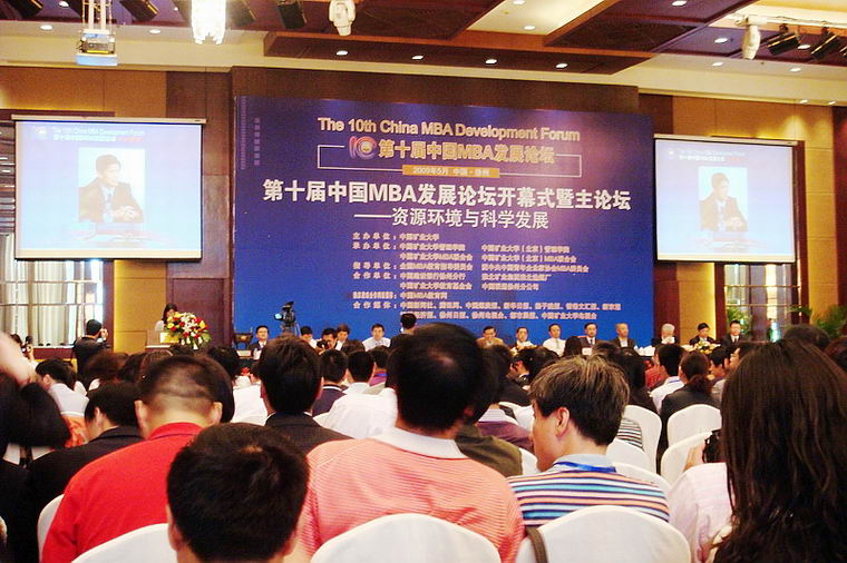 2009年05月17日,由全国MBA教育指导委员会、中国青年企协MBA委员会指导,中国矿业大学主办,中国矿业大学管理学院、中国矿业大学MBA联合会承办的“第十届中国MBA发展论坛”在徐州市开元名都大酒店开元厅隆重开幕,此次论坛主题为“资源环境与科学发展”。来自全国一百多所MBA培养院校的代表、企业家、管理学家等代表近千名汇聚本次论坛。