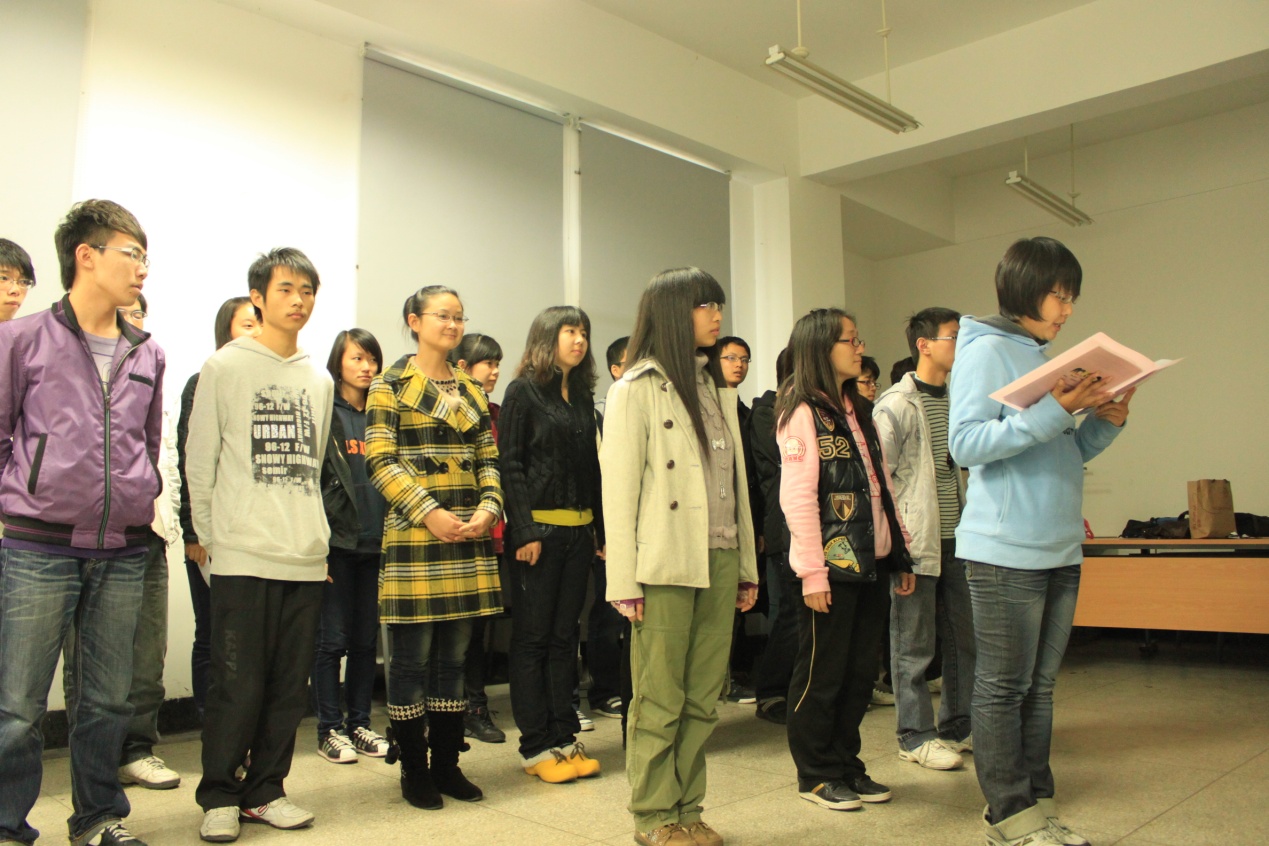 尽管准备的过程很不容易,但这丝毫没有影响同学们展现自我,张扬青春的激情,在小小的会议室里,各种表演节目精彩纷呈:从145091团支部感性的诗歌朗诵与活力四射的班歌演唱,到145092团支部劲爆的爵士拉丁;从144091团支部完美的吉他弹唱,到146091团支部的琵琶独奏;从142091团支部载歌载舞的歌舞青春,到142092团支部极富特色的天津快板和完全自创的班歌展示……最后是148091团支部以“物流”为特征的话剧表演。会唱内欢呼声,喝彩声此起彼伏,全然是一场歌舞盛宴,一顿丰富的视觉听觉大餐。
