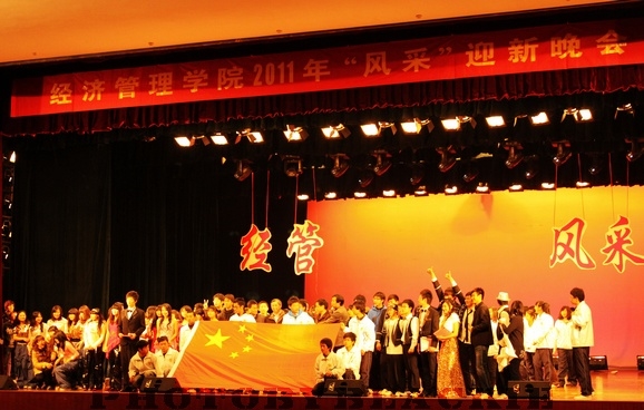 晚会节目形式丰富多彩、节目内容精彩纷呈。开场视频回顾了学院2010年举办的各种学生活动及获得的荣誉;新年祝福视频展示了学院各位老师、学院留学生、民族生、国防生及学院在世界各地高校的交换生对全院师生的新年祝福;成人仪式给新生上了非常有意义的一堂教育课;研究生会和学生会的舞蹈热情奔放;乐队演奏激情洋溢;此外还有充满经济管理专业元素的相声及“挑战杯”全国竞赛获奖同学自己创作的诗朗诵《我们的青春》。还有最让大家感动和难忘的是,学院院长、博士生导