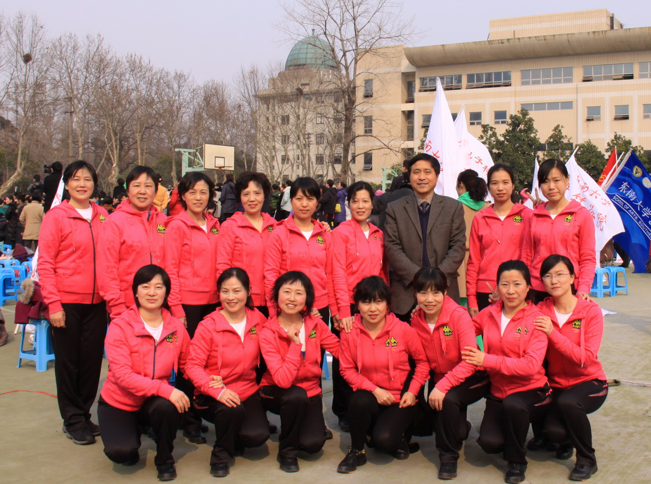 为庆祝“三八”国际劳动妇女节。best365官网组队参加学校在四牌楼校区体育场举行的“舞动校园 魅力东大”女教职工排舞大赛,常务副校长胡敏强、副校长赵启满、副书记刘京南、江苏省教育科技工会及部分兄弟院校工会主席、校工会及校机关、兄弟院系的领导和best365官网侯金文书记出席了此次活动。