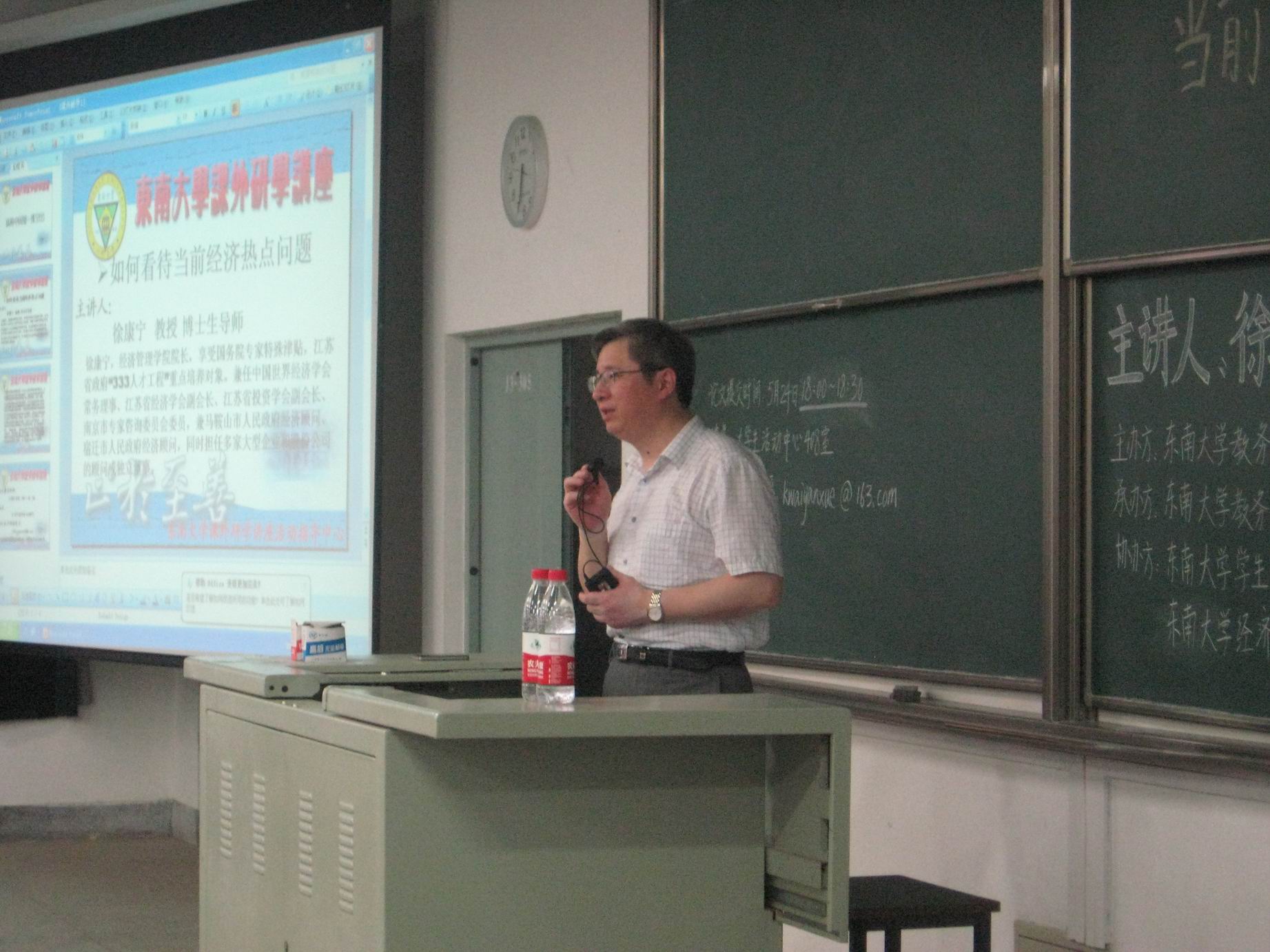 2011年5月19日18:30-20:30,best365官方网站登录入口院长徐康宁教授在九龙湖校区教三305开设了题为《如何看待当前经济热点问题》的课外研学讲座。