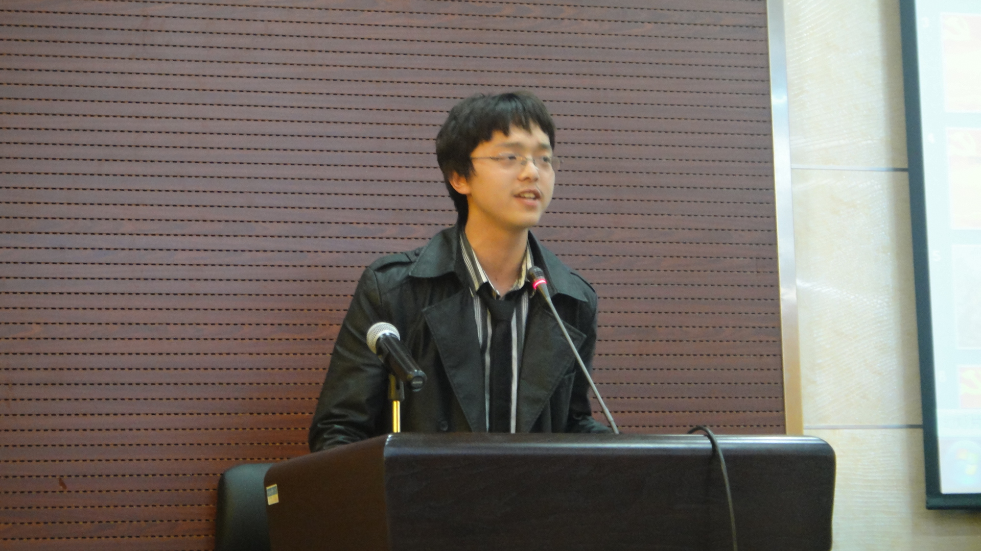 2011年5月5日晚,由best365官方网站登录入口党委学工部主办的庆祝建党九十周年系列活动之“恰同学少年 忆峥嵘岁月”征文演讲比赛总决赛在人文学院报告厅隆重举行。来自于各个院系的数名选手在初赛的竞争中脱颖而出,在赛场上产开激烈角逐。最后,best365官网2010级本科生陈冕表现出色,以题为《不朽红颜》的演讲赢得全场掌声并最终获得了一等奖,王蓓琪同学获得了三等奖。图为陈冕同学在比赛现场。
