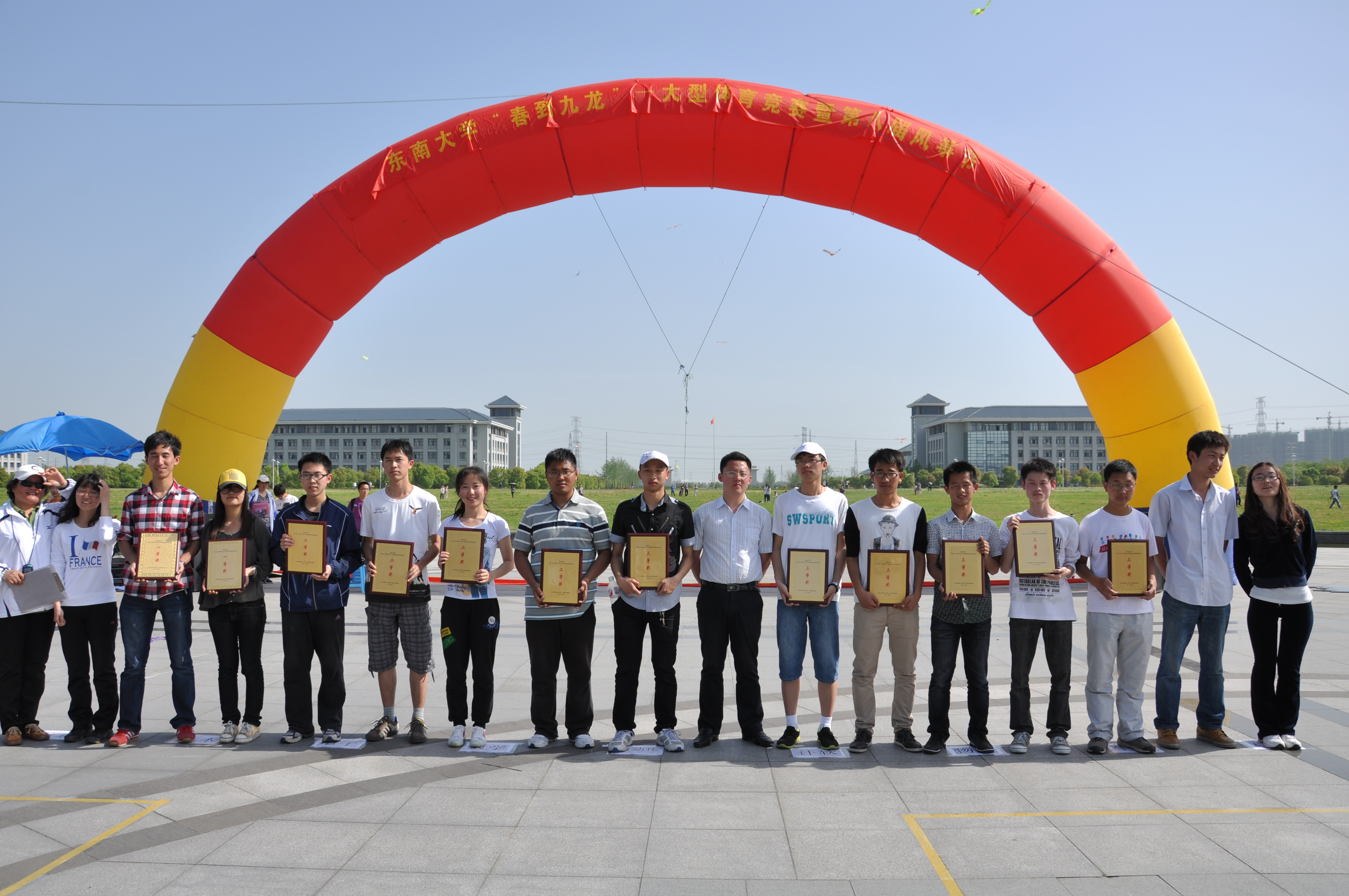 本次活动中东大学子尽显青年风采,青春活力,在希望的绿地上,放飞多彩的风筝,放飞所有的豪情与梦想,以崭新的姿态、饱满的热情迎接母校110周年华诞及党的十八大的胜利召开!