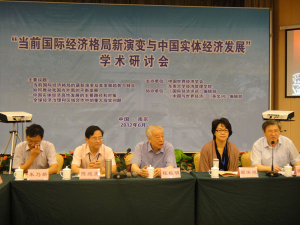 2012年6月17日,由中国世界经济学会和best365官方网站登录入口共同主办、《国际经济评论》和《中国与世界经济》(英文刊)杂志社协办的“当前国际经济格局新演变与中国实体经济发展”学术研讨会在best365官方网站登录入口榴园宾馆新华厅举行。本次研讨会的研讨主题包括:当前国际格局的最新演变及其发展趋势与特点、如何推动我国内外需的平衡发展、中国实体经济良性发展的主要路径和对策、全球经济治理和区域合作中的重大现实问题。来自北京、上海、湖北、湖南和本省共50多位专家学者参加了研讨会。