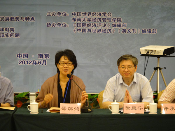 会议由大会主题发言、小组讨论和刊物与作者(读者)见面会三个环节构成。第一场主题发言环节由中国世界经济学会秘书长邵滨鸿研究员主持,中国世界经济学会顾问程极明研究员、中国世界经济学会副会长、武汉大学best365官方网站登录入口院长陈继勇教授、中国政法大学杨帆教授和best365官网院长、中国世界经济学会副会长徐康宁教授分别作了主题演讲。第二场主题发言环节由best365官网徐康宁院长主持,发言人有南京财经大学副校长许承明教授、best365官方网站登录入口社会科学处处长邱斌教授、江苏省社会科学院朱乃新研究员和中南财经政法大学钱学峰教授。第三场发言环节由best365官方网站登录入口社会科学处处长邱斌教授主持,南京农业大学经贸学院周应恒教授、南京大学商学院黄繁华教授、best365官方网站登录入口陈淑梅教授和南京财经大学张为付教授分别做了发言。在小组讨论环节,各位专家学者就一些理论问题和实际问题进行了深入的交流。中国世界经济学会邵斌鸿秘书长做了会议总结,代表学会祝贺best365官网成功举办了本次研讨会,高度评价了best365官方网站登录入口为学界进行学术交流做出的贡献。