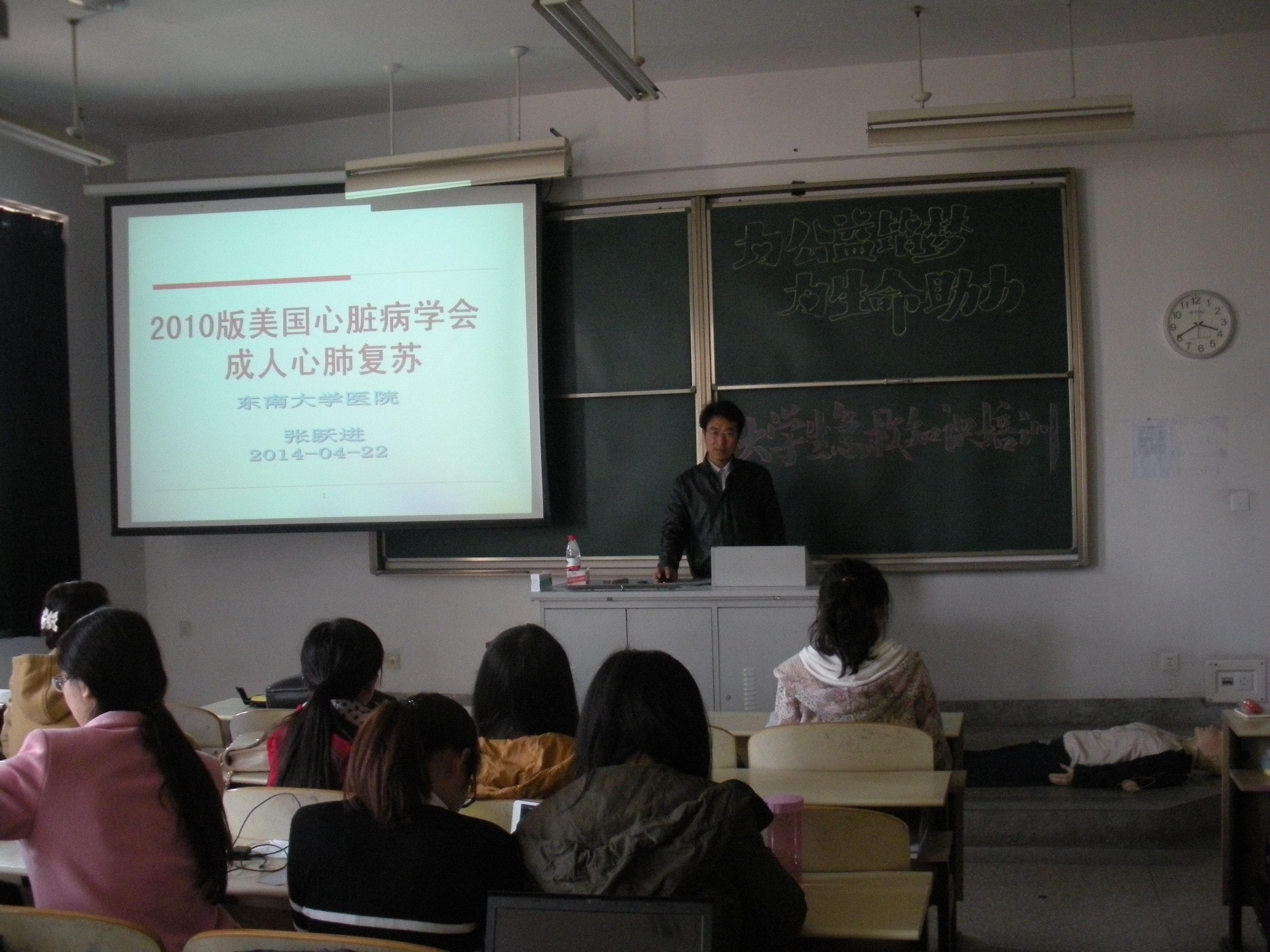 最能在关键时刻“四两拨千斤”的急救技能,却往往最不被大家重视。为了进一步增强大学生生命保护意识,提高生命安全防护技能,2014年4月22日下午,以“为公益筑梦,为生命助力”为主题的“急救知识培训活动”在纪忠楼Y206拉开帷幕。本次活动由best365官方网站登录入口团委主办,院研究生会、党委2013级硕士第四党支部共同承办。