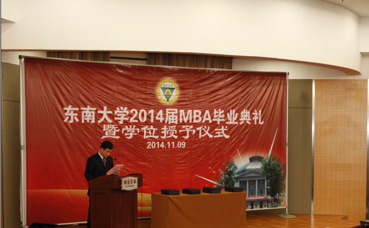 优秀硕士毕业生宋剑锋代表MBA毕业生发言。他言真意切地表述了同学们奋发学习而学有所获的喜悦之情,以及即将扬帆破浪、续写辉煌的雄心壮志;声情并茂地表达了对学校生活的无比留恋、对老师教诲的感激之情以及对母校的深深眷恋。