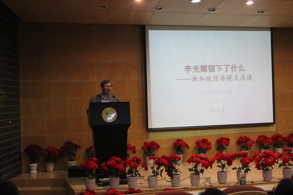 201541日晚,由徐康宁教授所做的主题为《李光耀留下了什么—新加坡经济模式的启示》研究生人文科学素养讲座圆满完成。东大学子齐聚经管院报告厅聆听徐康宁教授剖析李光耀精彩不凡的一生。