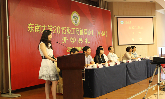 潘勇同学的发言代表了所有2015级MBA新生的共同心声。他声情并茂地抒发了成为东大MBA学子的自豪之感和兴奋之情,言真意切地表达了对知识洗礼、理念熏陶、能力提升的强烈渴望以及勤勉刻苦、砺志品学、学以致用的诤诤誓言。