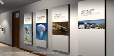 效 果 图:采用主题展示,一面墙一个主题内容一个主题,内可以放置2~3块灯光展板,可以安排3个主题(学生培养、招生、学术活动)