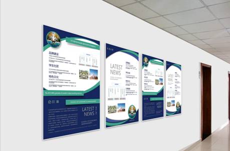 风格内容:简单得体,结合办公室功能,图文结合展示学生培养等相关内容,让访客对学院有一个大致的了解。