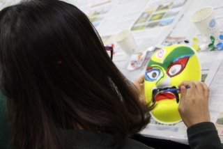 作为中华传统文化参天大树上的细小一枝,脸谱文化一直有着它独特的魅力。说起脸谱,大家更多第一会联想到京剧脸谱,今天的比赛作品大多也是京剧脸谱。活动开始,选手们依次挑选自己所需的颜料和各种工具,开始创作。挑选颜料,调色,勾线,上色......