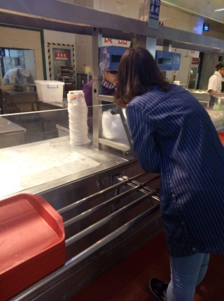 2017年4月22日下午,志愿者在食堂询问后勤阿姨们想要了解的金融知识以及相关的问题。根据搜集的问题,志愿者们整理资料制作讲解的材料。