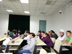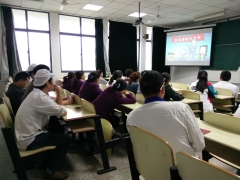 2017年4月24日,金融知识万里行之走进食堂后勤活动于下午14:00于纪忠楼教室开展。由志愿者分别介绍防诈骗知识及被诈骗后的应对措施。因为内容都是志愿者搜集到的后勤人员想要了解的知识,因而解答过程十分顺利,后勤人员认真聆听。