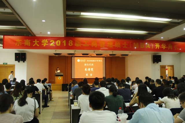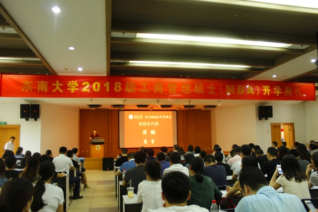 我校第十一届MBA联合会执行主席苏畅同学作为在校生代表,对2018级同学的到来表示热烈的欢迎,诚挚地邀请新同学们积极加入MBA联合会组织。她与学弟学妹们分享了自己的学习体会:一是专业管理知识的学习需要付出努力和汗水;二是思维模式的改变有助于优化实际工作;三是人际交往中思想碰撞可迸发出智慧的火花。