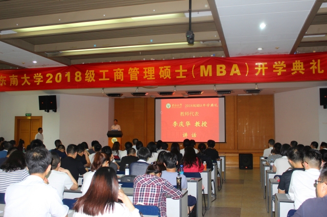 我校MBA优秀教师李庆华老师作为任课教师代表讲话。李老师给新生们带来了开学第一课,首先强调终生学习的理念。李老师从专业学习的角度,给同学们提出了四个方面的学习建议和学习方法:一是听说读写,为人处世要胸怀天下;二是改变假设,打开自我,面向世界;三是主动交流,虚怀若谷地用心沟通;四是学以致用,通过实践去检验理论。