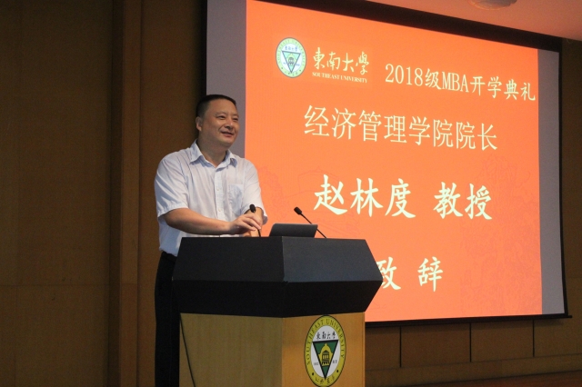 赵林度院长首先致辞。赵院长代表学院热烈欢迎412位MBA新生加入best365官方网站登录入口大家庭,并向同学们介绍了best365官网近年来在学科发展、师资队伍建设、人才培养、科学研究、MBA发展等方面所取得的突出成绩。他指出,不久前教育部学位与研究生教育发展中心公布了全国首次专业学位水平评估结果,我校工商管理硕士(MBA)获评A-档,这意味着我校MBA进入全国优秀培养院校行列(前15%),这让我校MBA品牌价值得到了进一步提升。在解读经管学院“育胸怀天下英才,铸通达古今新知”的使命、“桃李天下皆有为”的愿景时,赵院长提出了健康管理的理念,特别强调了学思并重、团结协作的重要性。