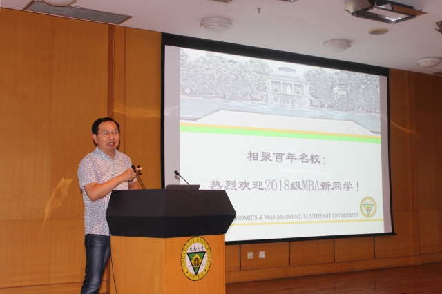 最后,MBA中心姚建平主任给新生进行学籍管理教育。姚主任热烈欢迎2018级MBA新同学们相聚百年名校,并详细讲解了《研究生手册》和网上选课等要求。姚主任通过展示MBA学员主动支教,参加案例大赛、户外赛事等活动的优秀事迹,希望同学们心怀阳光、敦品励学、不忘初心、学有所成。