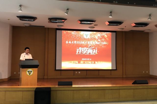 赵林度院长给新生代表李修竹、陈涛授旗,标志着2018级MBA的正式启程。开学典礼在《best365官方网站登录入口校歌》的激扬旋律中进入了专题报告与入学教育阶段。