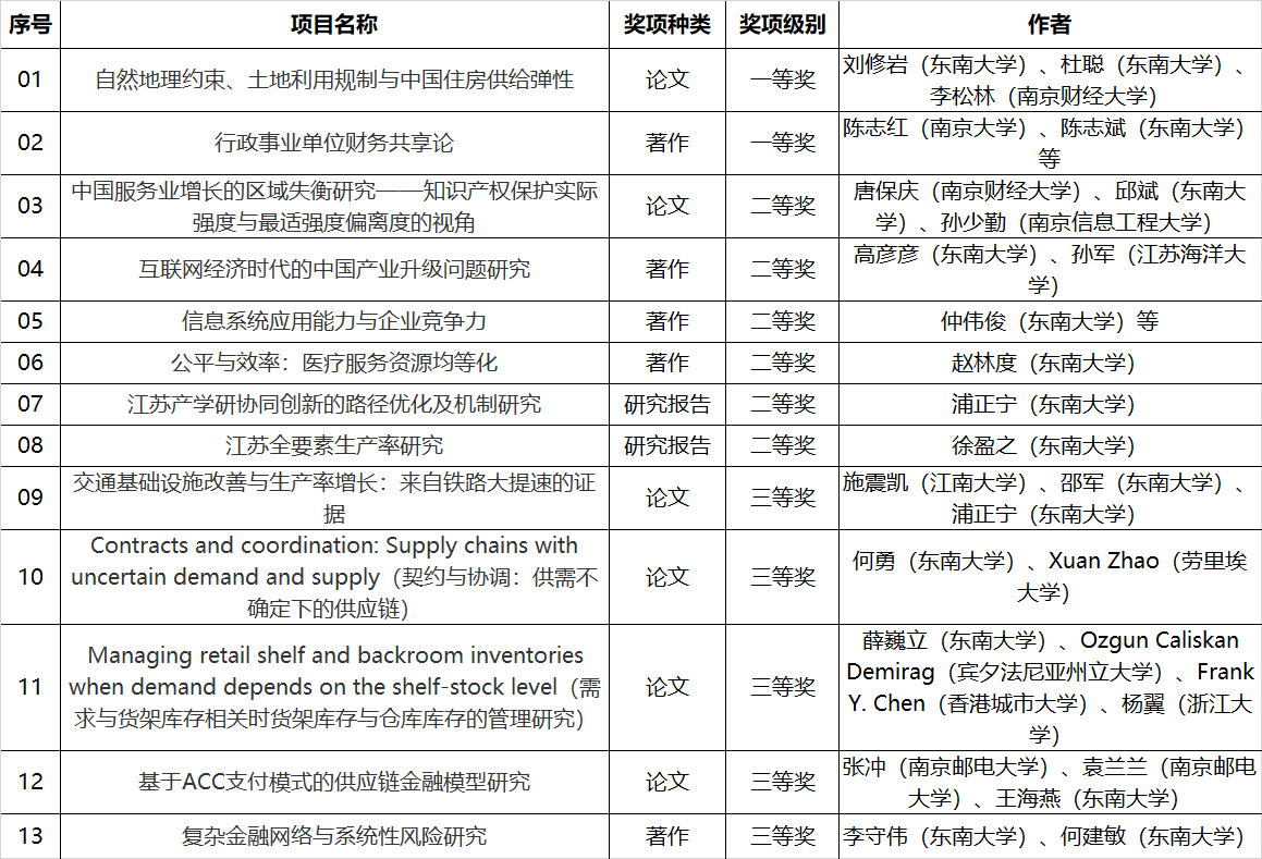 据悉,江苏省哲学社会科学优秀成果奖是由江苏省人民政府设立,是江苏省哲学社会科学界规格最高的政府奖,每2年评选一次,本届哲社优秀成果奖共评出获奖成果748项,其中一等奖119项,二等奖299项,三等奖330项。该奖项对于激励广大社科工作者加强理论创新,推动哲学社会科学学科建设和人才队伍建设,促进优秀科研成果不断涌现以及党政决策科学化,具有重要的引领和支撑作用。