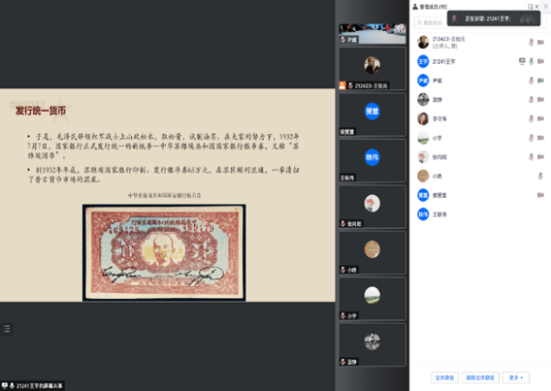 至此,本次“师生共上党课”系列活动之红色金融的历史经验与实践圆满结束,同学们纷纷表示对红色金融的历史与实践有了更加深入的了解,进一步明白了要坚持党的领导、坚定理想信念、秉持为民情怀、勇于开拓创新、勇于担当责任!