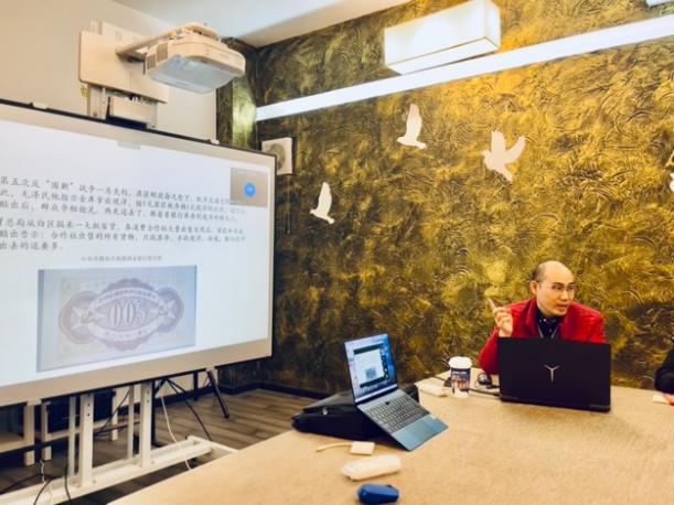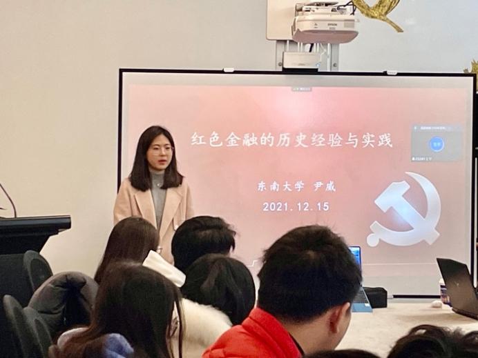 尹威老师为大家带来了题为“红色金融的历史经验与实践”的主题分享,从中华苏维埃政权的红色货币、建国初期平抑上海物价和2015年股灾三个方面展开,内容饱满且生动,现场同学都在认真聆听。