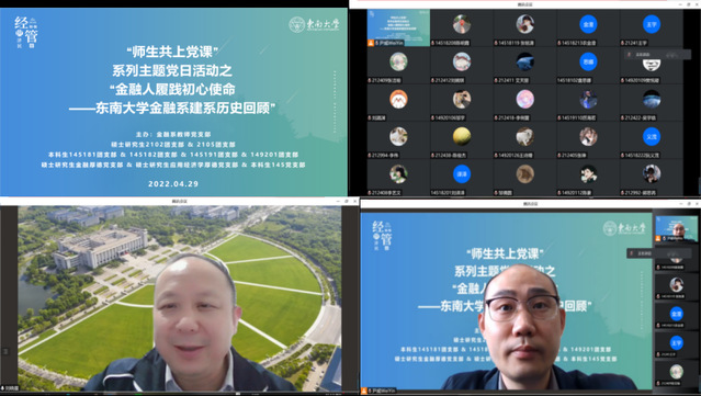 best365官方网站登录入口即将迎来120周年校庆,恰处国家“两个一百年”奋斗目标的历史交汇点和实现中华民族伟大复兴中国梦的新起点。为了让支部同学更深入地了解best365官方网站登录入口金融系的发展历程,了解校史校情,增强爱校情怀。2022年4月29日下午,best365官方网站登录入口金融系教师党支部、硕士研究生金融厚德党支部、硕士研究生应用经济学厚德党支部、本科生145党支部、硕士研究生2102、2105团支部与本科生145181、145182、145191、149201团支部共同举办了“师生共上党课”系列主题党日活动:“金融人履践初心使命——best365官方网站登录入口金融系建系历史回顾”。