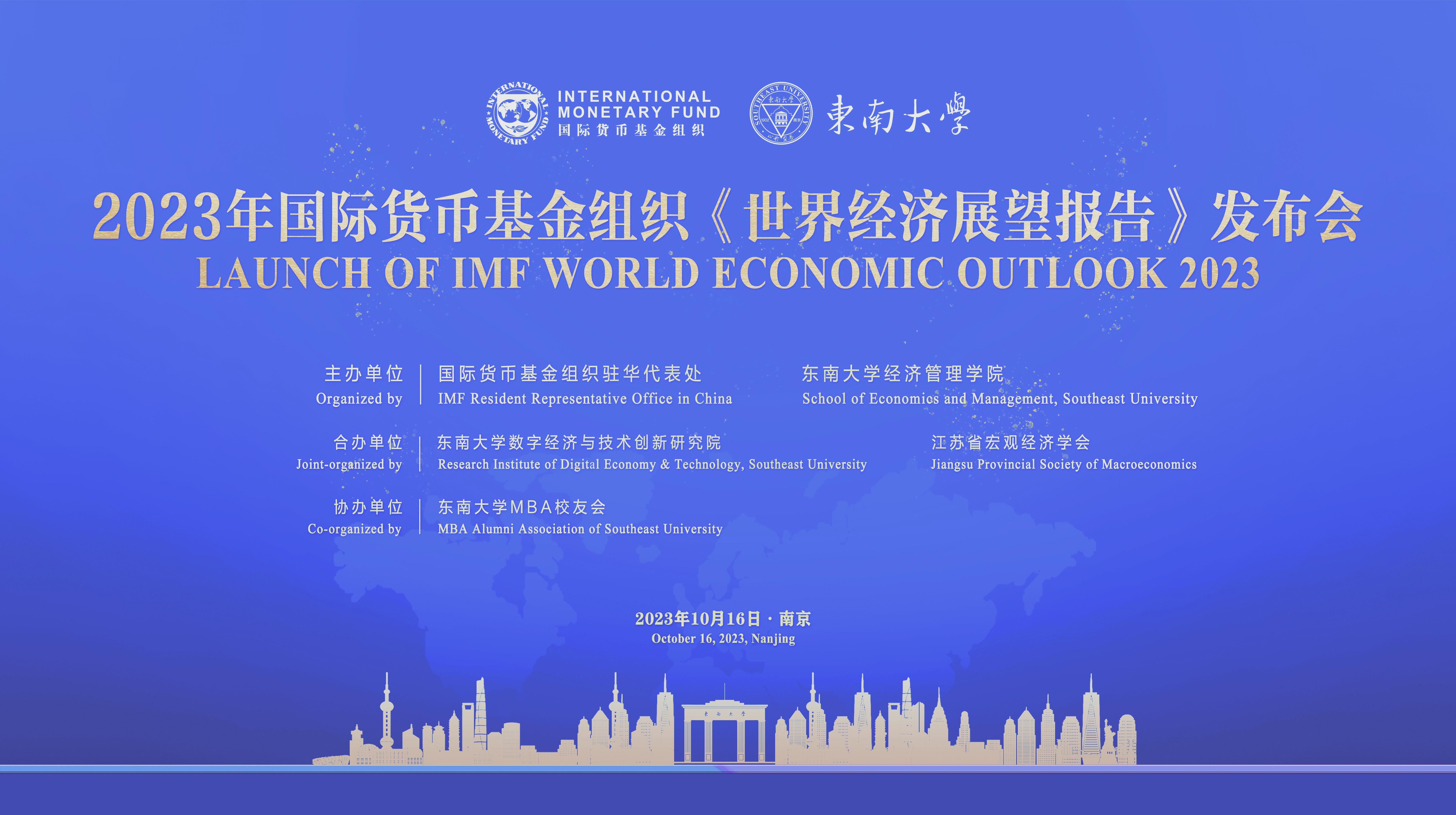 The World Economic Outlook Report is an economic overview published by the International Monetary Fund (IMF). It presents the analyses of IMF staff economists on the global economic situation and macroeconomic forecasting. The launch of IMF World Economic Outlook 2023 will be held in Nanjing on October 16. The event is jointly organized by the IMF Resident Representative Office in China and the School of Economics and Management of Southeast University of China, co-organized by Research Institute of Digital Economy & Technology of Southeast University and Jiangsu Provincial Society of Macroeconomics.