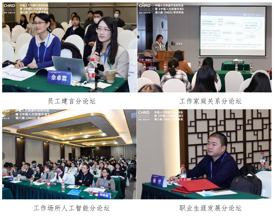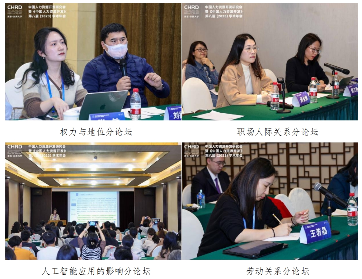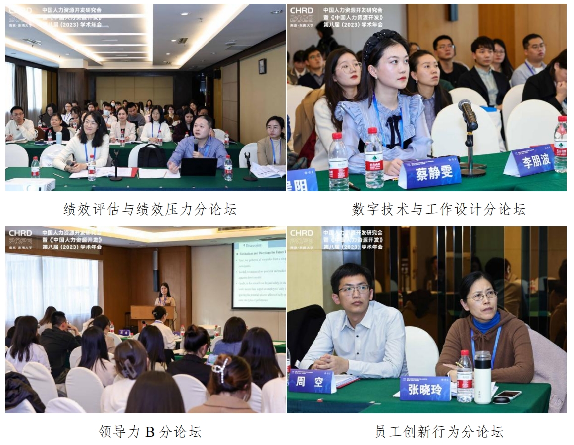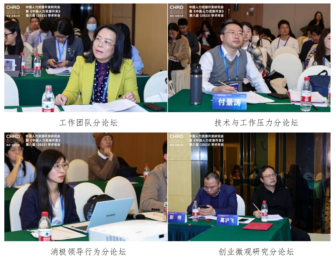 12月9日下午,本次大会组织安排了“领导力”、“劳动关系”、“员工创新行为”、“工作家庭关系”和“数字技术与工作设计”等24个主题的平行分论坛,共有125篇学术论文在现场分论坛进行展示交流与讨论。48位国内优秀青年学者分别作为主持人和评议人参与分论坛,为报告人给出了详实而富有建设性的意见。