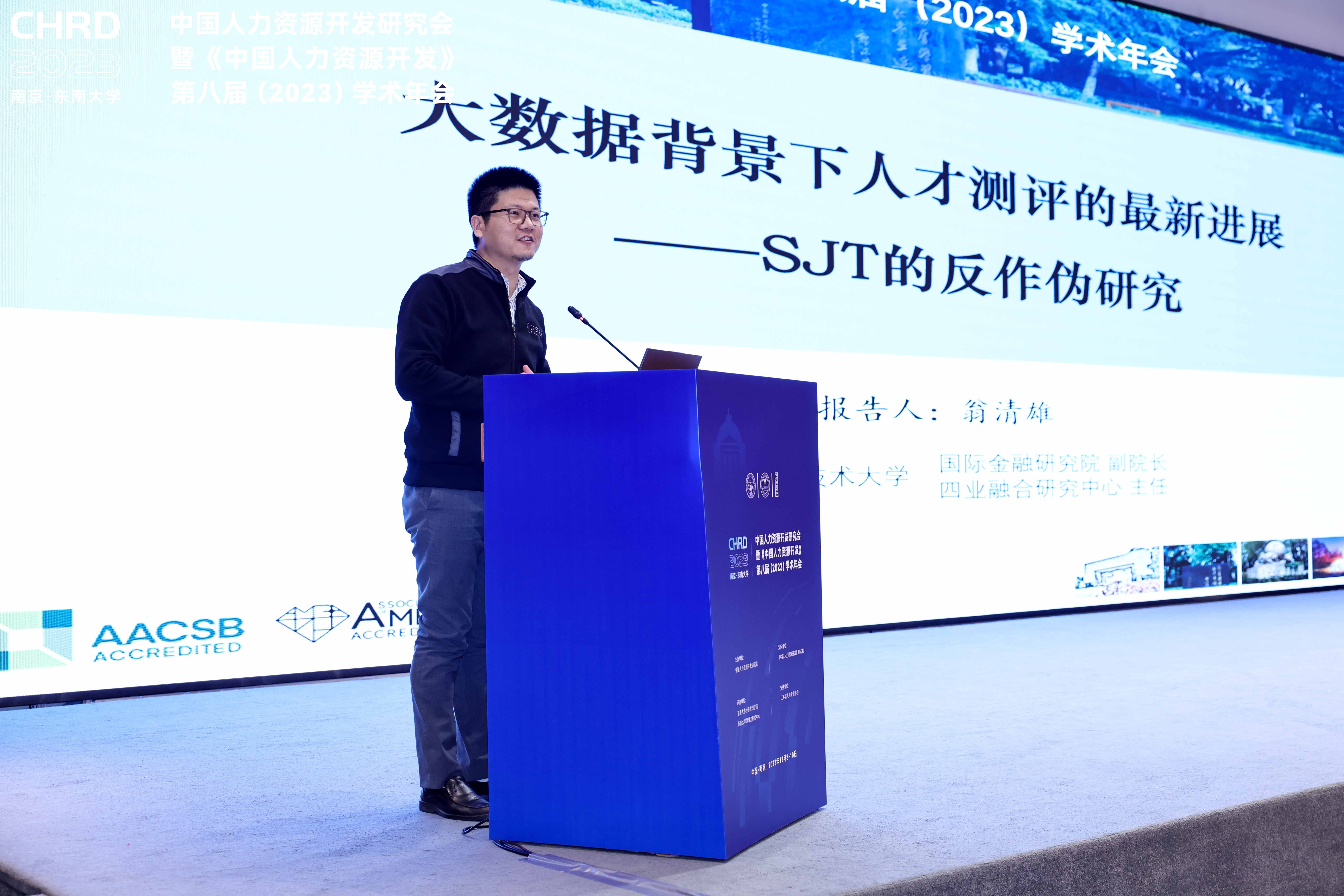 中国科学技术大学管理学院翁清雄教授作了题为“大数据背景下人才测评的新进展”的主题报告。他从现实调查数据入手,说明人才测评的必要性,并对情境判断测验(SJT)测评方法进行了详细阐释。他指出,情境判断测验有较高的预测效果,但易被作伪。结合自身的两个研究,他详细阐述了可作伪性和作伪动机的降低策略。最后,他呼吁广大青年学者关注人才测评研究领域,助力中国人力资源评价的理论研究和实践应用。