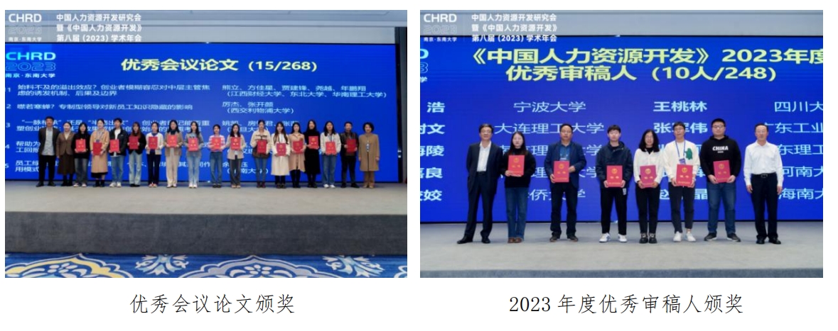 本次年会设立优秀会议论文奖,经过专家多轮匿名评审,本届论坛从268篇论文投稿中,共选出 15 篇优秀会议论文,由best365官方网站登录入口吕鸿江教授等为15位优秀会议论文作者颁奖。同时,还评选出《中国人力资源开发》10名优秀审稿人和《中国人力资源开发》2022年度的5篇优秀论文。