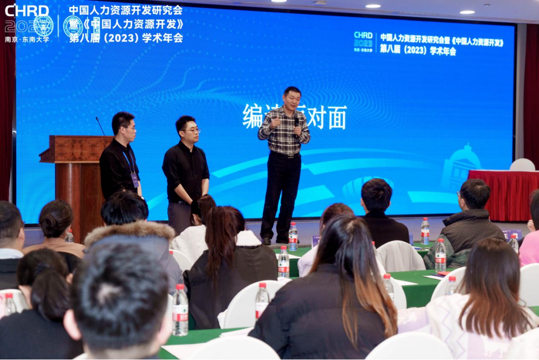 为丰富会议内容,年会为青年学者提供了编读面对面交流的机会。12月10日下午,《中国人力资源开发》杂志社社长李直主持了本次交流会。本次大会邀请到《中国人力资源开发》编辑部王震、罗文豪、彭坚、周空等成员,依次从期刊基本情况、办刊定位与编辑思想、投稿审稿流程与建议、栏目介绍、学术活动、福利包等方面进行了分享。