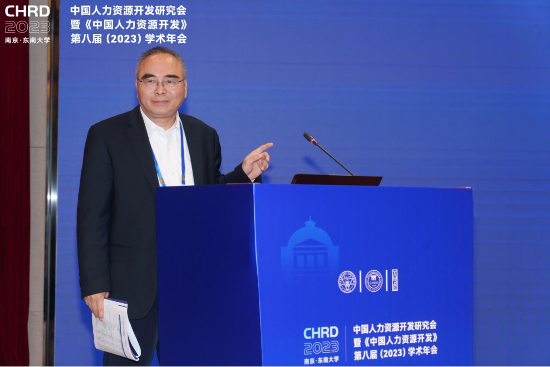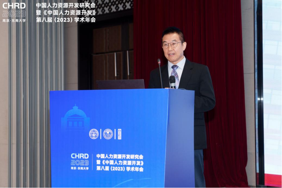 国家发展和改革委员会社会发展司人力资源开发处处长翟建民在致辞中指出人才在中国式现代化全局的战略地位,中国人力资源开发研究会的召开恰逢其时,意义重大。作为宏观经济和综合协调部门,国家发改委在规划引领、政策制定、投资支持等方面积极支持人才强国、教育强国的建设。他表示,未来也希望各位专家学者,立足中国大地做研究,积极回答中国之问、世界之问、人民之问、时代之问,推动知识创新、理论创新、方法创新,为建设人才强国而提供强大的智力支持。