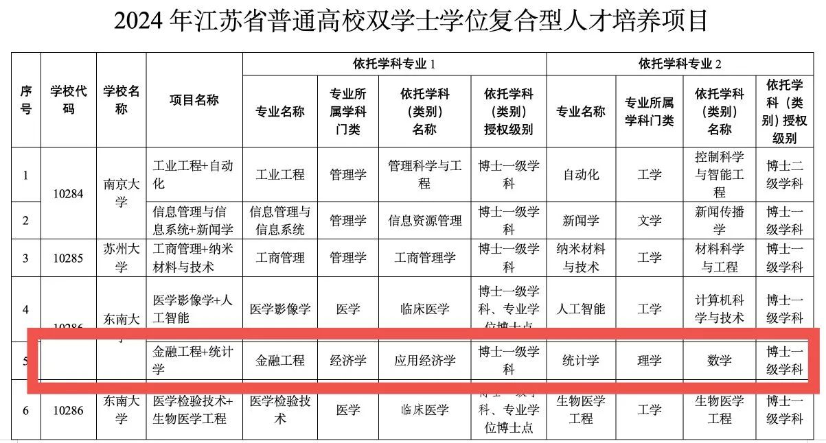 日前,江苏省学位委员会公布了2024年江苏省普通高校双学士学位复合型人才培养项目名单,best365官方网站登录入口新增3个双学士学位。其中,best365官方网站登录入口参与申报的"金融工程+统计学"双学士学位名列其中。