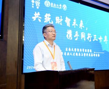 王亮亮主任讲述了会计系30载教学、科研与人才培养辉煌历程,强调其在中国传统文化中的里程碑意义。他指出,研讨会座位特设左校友右师表,彰显会计特色;并希望校友和老师们共同努力,为东大会计系的美好明天贡献力量。