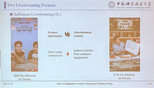 直播电商重构了电商交易模式与消费场景,研究其策略选择、机制设计与主体互动,既能破解信息不对称难题,又能为品牌直播决策和平台治理优化提供理论支撑。为增进学院师生对这一领域的理解,学院于2025年12月19日上午,特邀中国科学技术大学张鑫副教授,举办了主题为《Brand-Owned or Influencer Livestreaming? Strategic Choices across Brand Awareness and Product Characteristics》的学术讲座。讲座通过构建博弈模型,系统分析品牌自播和达人直播这两种主流直播策略选择问题,学院相关领域多位教师和众多学生积极参与。