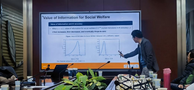 报告最后,黄庭亮教授总结了研究结论,并对未来的医疗监管政策设计进行了展望。整场报告逻辑严密、见解独到,为师生们理解数字医疗时代下的责任归属、监管政策以及医生与AI的互动关系提供了坚实的理论依据与全新视角。在场师生反响热烈,并就模型假设与现实应用的结合与黄教授进行了深入讨论,本次报告圆满结束。