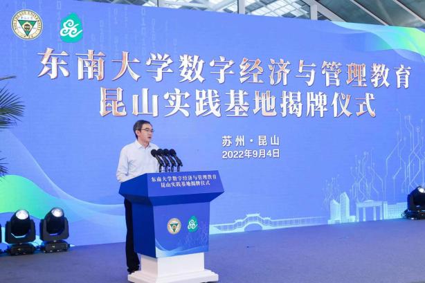 On September 4, the Kunshan Practice Base of Digital Economy and Management Education of Southeast University was inaugurated. Zuo Wei, Secretary of Party Committee of Southeast University, and Zhou Wei, Secretary of Kunshan Municipal Committee, jointly inaugurated the practice base. Chen Liyan, Deputy Secretary of the Municipal Party Committee and Mayor, and Zhong Wenqi, Vice President of Southeast University, delivered speeches. Xu Huadong, Deputy Secretary of the Municipal Party Committee, Yuan Jianhong, Secretary of the Party Committee of the School of Economics and Management of Southeast University and Special Advisor of Kunshan Industrial Innovation Cluster, and Hu Hanhui, Professor of the School of Economics and Management and Special Advisor of Kunshan Industrial Innovation Cluster, attended the event.