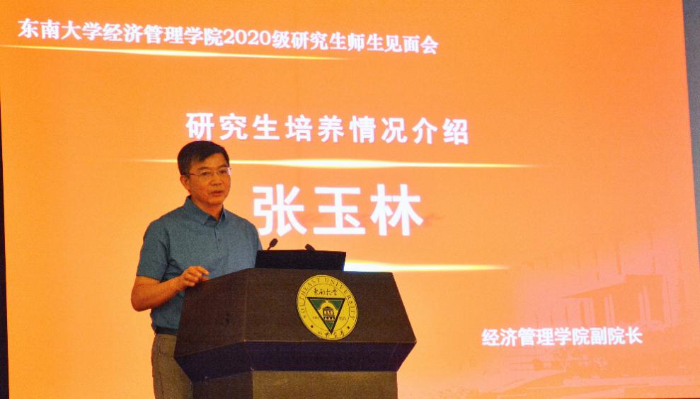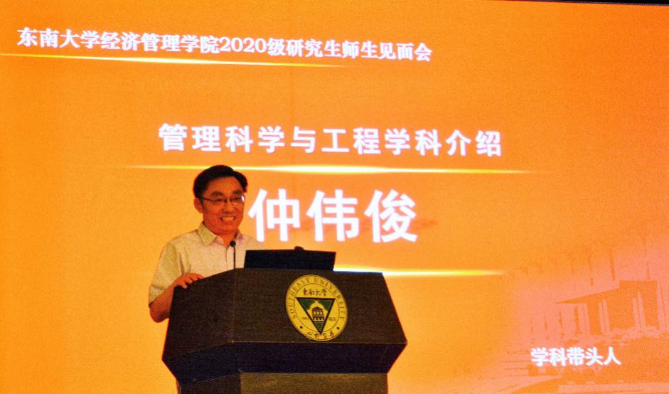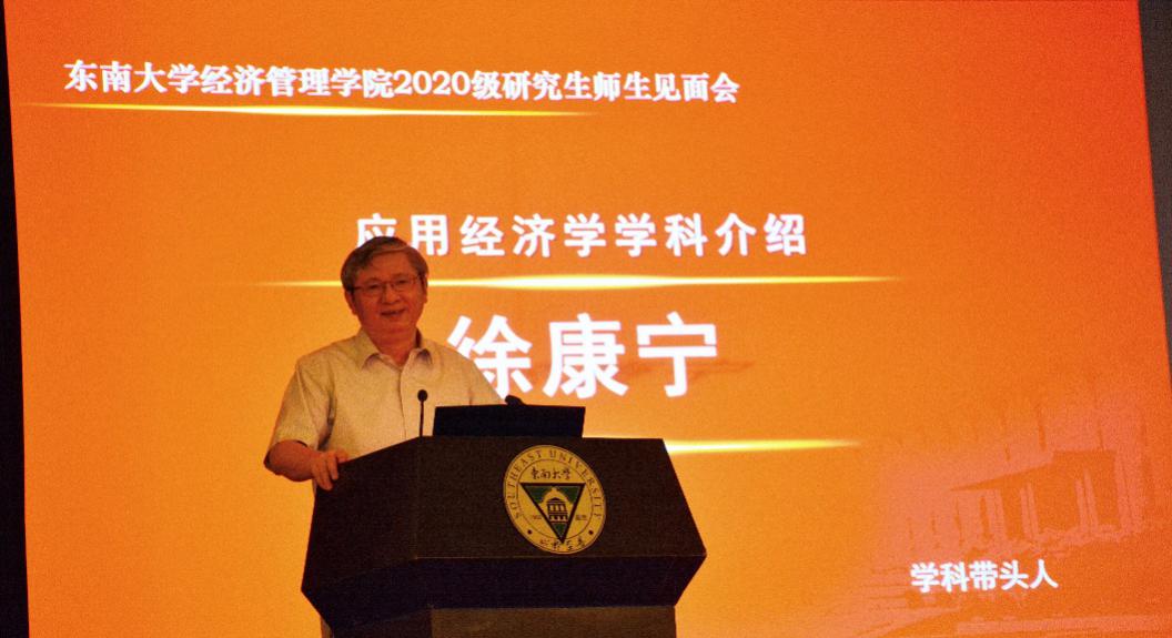 Professor Xu Kangning from the Discipline of Applied Economics reviewed, with deep feeling, the long construction history, discipline development, and talent cultivation of the Discipline of Applied Economics of Southeast University, and then briefly introduced the research field of Applied Economics and the citation of papers in this discipline, as well as the development direction and goal of the Discipline of Applied Economics in the future. At the same time, he hoped that students would live a good life as postgraduates, care about the country, care about economic trends, and write excellent papers. He suggested that students should have ambitious goals, academic feelings, a broad vision, the integration of theory and practice, and curiosity.