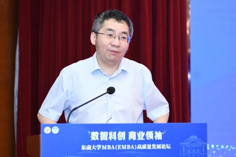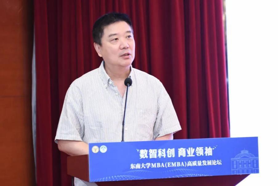 On behalf of the university, Vice President Jinshi firstly delivered a speech, in which he warmly welcomed the guests and teachers attending the forum, briefly introduced the history and current situation of Southeast University and Southeast University MBA (EMBA), and put forward his earnest expectations for the high-quality development of MBA (EMBA) education.