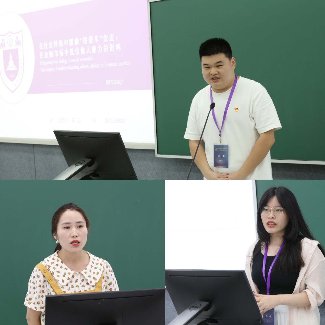 Finally, the group "Intelligent Finance and Strategic Analysis" was presented by three doctoral students: Chen Shi, Zhu Yue, and Feng Yan, who shared their research findings. Chen Shi, a doctoral student from Nanjing University, presented his research titled "Mitigating Free Riding in Social Networks: The Impact of Underestimating Others' Ability in Financial Market". He investigated two manifestations of traders' overconfidence: underestimating the abilities of others and overestimating their abilities, and proposed that overconfidence among traders in social network markets hinders costless information acquisition. Zhu Yue, another doctoral student from Nanjing University, shared her research work titled "The Role of Managerial Capabilities in Enterprise Development: An Empirical Study from the Perspective of High-Quality Development." Using sample data and dynamic managerial capability theory, she studied the impact and underlying mechanisms of managerial capabilities on high-quality enterprise development, as well as the moderating effect of digital transformation on this relationship. Feng Yan, a doctoral student from Southeast University, presented her research titled "The Impact of Vertical and Horizontal Leadership Distribution on Team Knowledge Transfer from a Paradox Perspective." She constructed a model of leadership distribution in teams based on the "Yin-Yang Paradox" perspective and explored the differentiated impact of the "one-sided dominance" and "balanced dualism" leadership models on team knowledge transfer and the internal relationship mechanisms between them based on hierarchical functional theory.