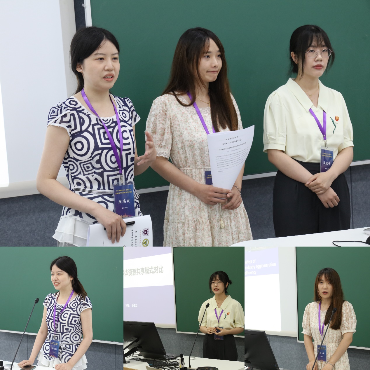 Subsequently, the "Logistics System Optimization and Management" group had presentations from three doctoral students: Zhou Ruiqi, Zhai Youzi, and Yao Hua, who shared their research work. Doctoral student Zhou Ruiqi from Nanjing University presented her research work titled "The Last-Mile Delivery Strategy: Relay Station Service or Delivery at Home?" Her study investigated when express service providers choose to use third-party relay station services under various competitive conditions. She also discovered the existence of a threshold for relay fees and analyzed its impact on demand and profits in monopoly situations. Doctoral student Zhai Youzi from Southeast University reported on her research entitled "Allied Two-tier Hospital Systems: A Comparison of Two Resource Sharing Strategies." She aimed to provide guidance for decision-makers creating higher social welfare, resource utilization, and sustainable hospital alliances, proposing a solution involving constructing a two-tier hospital system consisting of ULHs and LLHs to address resource utilization imbalances. Doctoral student Yao Hua from Southeast University presented her research on "Analyzing the Threshold Effect of Environmental Regulation and Logistics Industry Agglomeration on Road Green Logistics Efficiency." Using the Super-SBM model and panel regression model, she conducted an empirical study on the relationship between environmental regulation, logistics industry agglomeration, and RGLE.