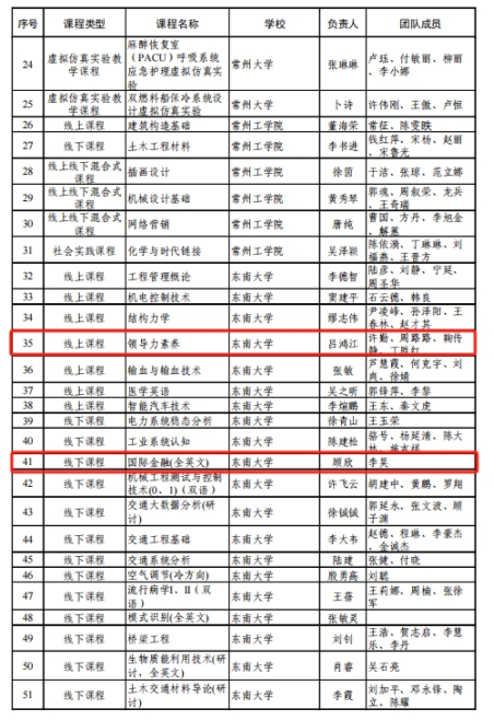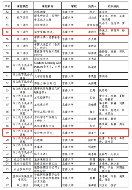 Recently, the Jiangsu Provincial Department of Education announced the second batch of provincial-level first-class undergraduate courses. Four courses from the School of Economics and Management at Southeast University were selected for this prestigious recognition. These include the online course Leadership Competence led by Professor Lv Hongjiang, the offline course International Finance (All-English) led by Professor Gu Xin, the offline course Operations Management (Seminar) led by Professor Li Sijie, and the blended online and offline course Statistics (All-English) led by Professor Pu Zhengning.
